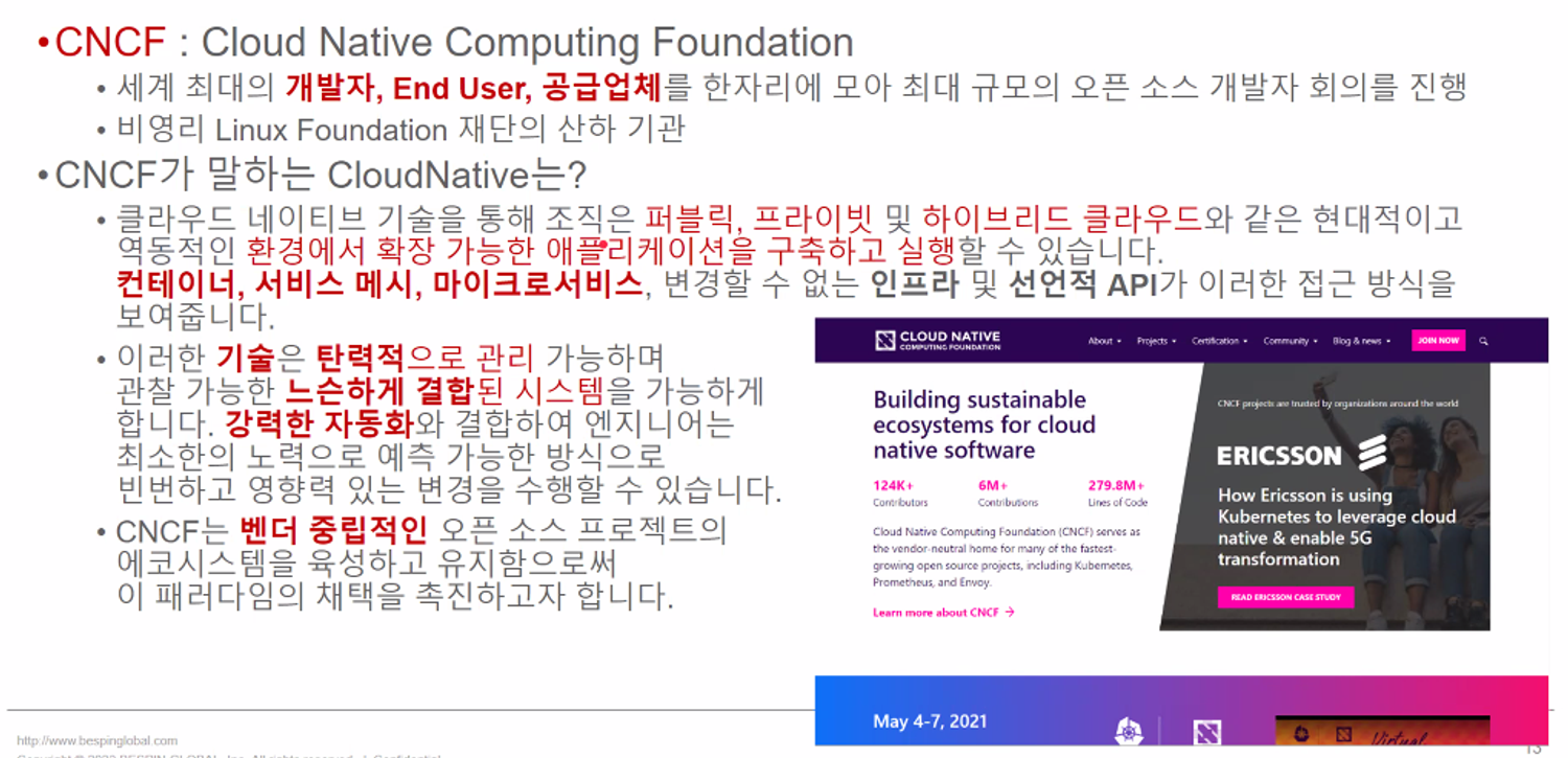 - CNCF는 벤더 중립적인 오픈 소스 프로젝트 생태계를 육성하고 유지함으로써 해당 패러다임 채택을 촉진함