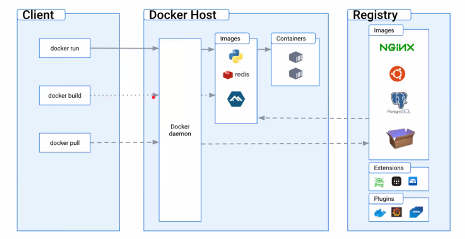 - docker client와 docker daemon은 RESTfullAPI로 통신함