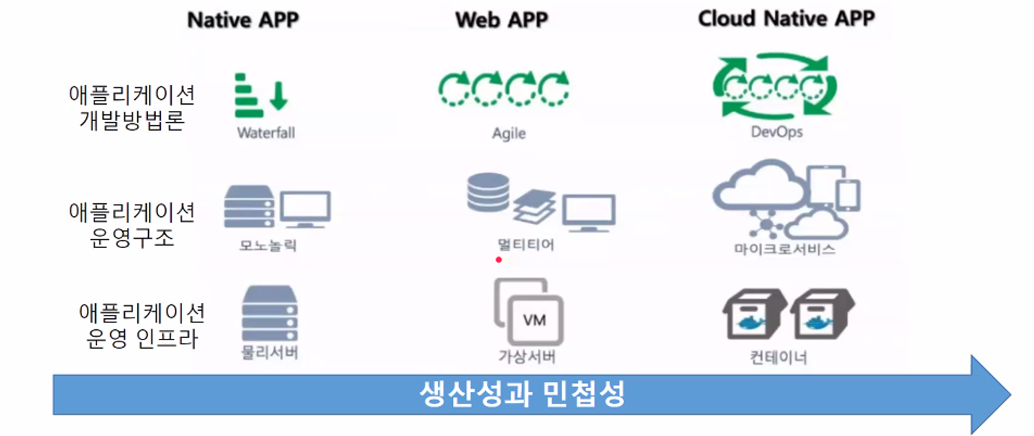 - 시대적으로 변화되는 애플리케이션 개발환경과 인프라 구조