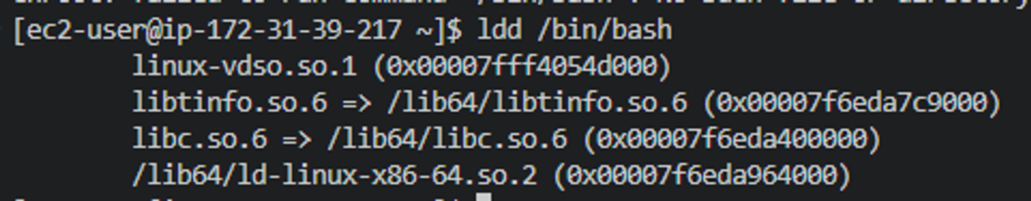 /bin/bash의 실행 파일들이 필요/bin/bash실행을 위한 의존성 file도 함께 필요