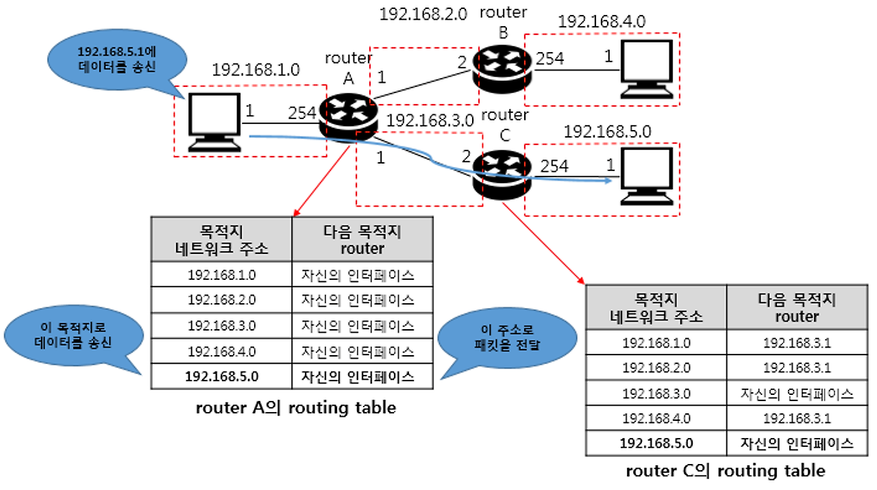 - 노드의 IP를 기반으로 네트워크에서 경로를 선택하는 것