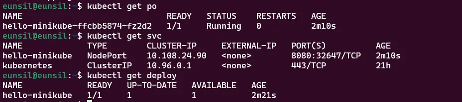 | minikube service [서비스명] | 로컬 브라우저에서 서비스 접근 |