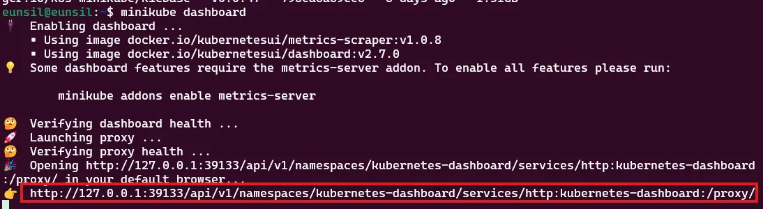 minikube dashboard