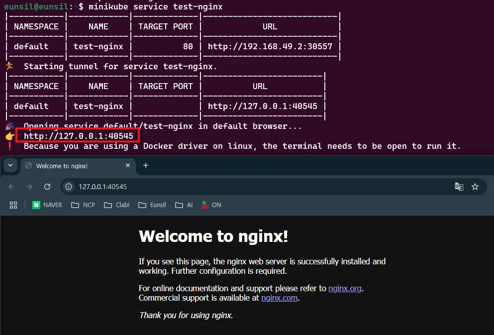 - 때문에 외부에서 접속 가능하도록 NodePort type으로 expose하여야 함