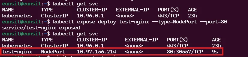 kubectl expose deploy test-nginx --type=NodePort --port=80