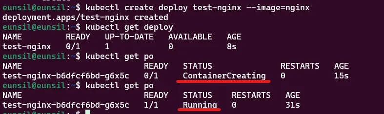 # nginx 이미지를 기반으로 test-nginx 라는 이름의 deployment를 생성